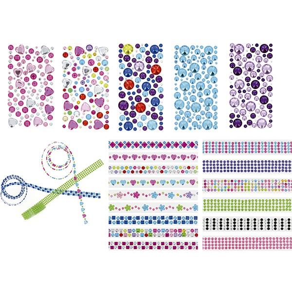 Este producto es un set de figuras adhesivas de cristal en forma de corazones y círculos de colores surtidos, diseñadas especialmente para niños, marca Fixo Kids. Cada figura mide 9.5cm x 16cm y son perfectas para decorar manualidades y proyectos creativos.