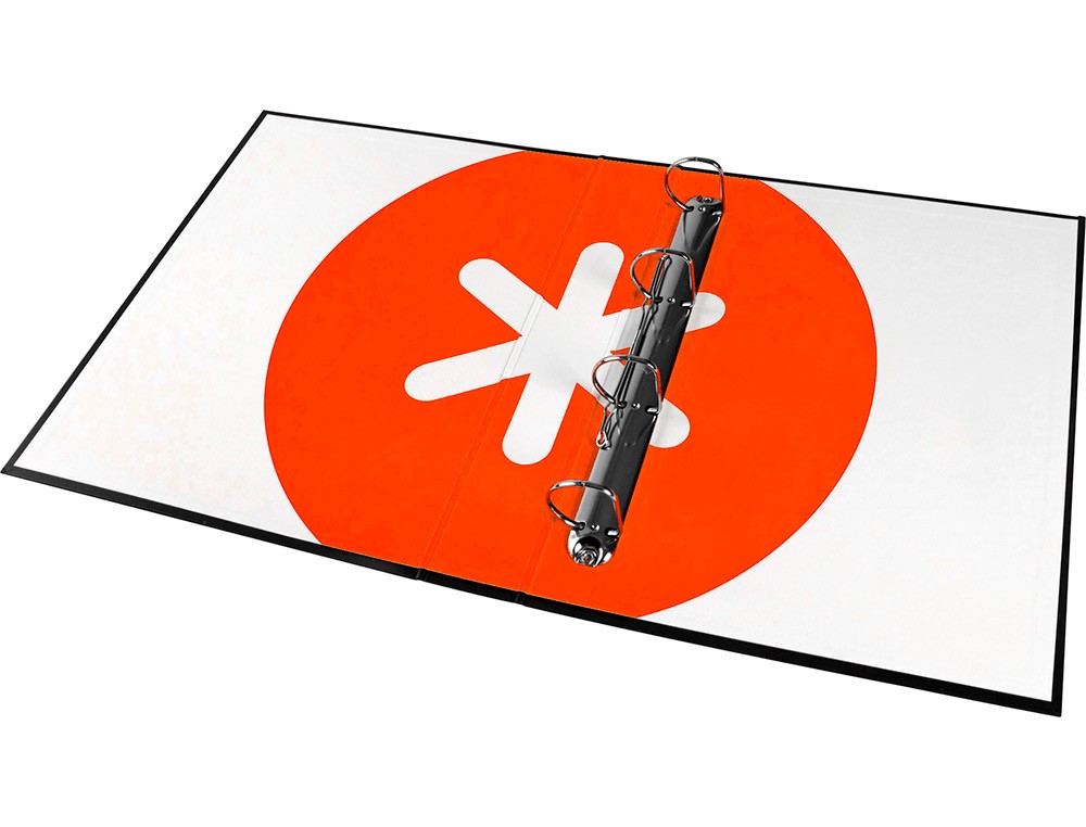 Esta carpeta está fabricada con materiales de alta calidad, con una cubierta forrada resistente y duradera. Sus 4 anillas de 40 mm de diámetro permiten una capacidad amplia para almacenar tus documentos de tamaño A4. Está disponible en un elegante color negro que le brinda un aspecto profesional.