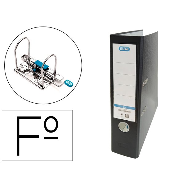 El archivador de palanca Elba está diseñado para organizar y almacenar documentos y papeles de forma segura y ordenada. Con su cubierta de cartón forrado de PVC resistente, protege los documentos de daños y mantiene su aspecto profesional. Su diseño con un lomo de 80 mm permite almacenar una gran cantidad de documentos en formato folio, ideal para oficinas y entornos laborales.