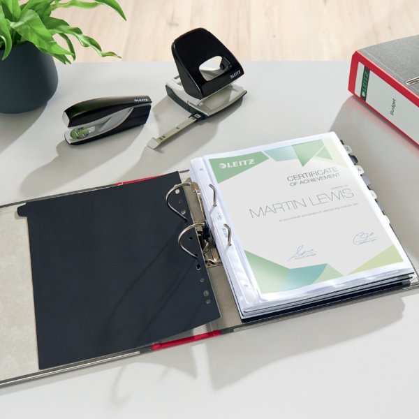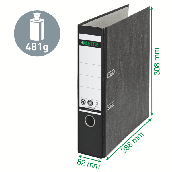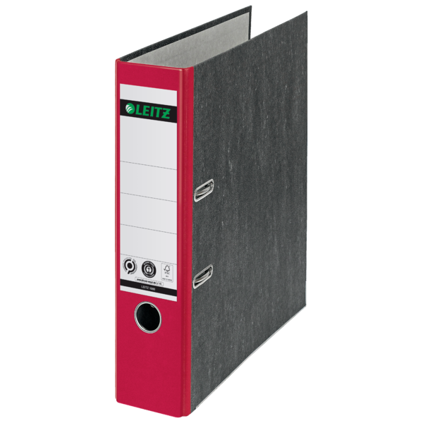 El archivador de palanca Leitz es un producto de alta calidad y durabilidad, conocido desde 1896 por su excelencia. Su cubierta de papel con efecto jaspeado y su mecanismo superior de 180° lo hacen ideal para uso diario. Además, es respetuoso con el medio ambiente y cuenta con certificaciones Blue Angel y FSC.