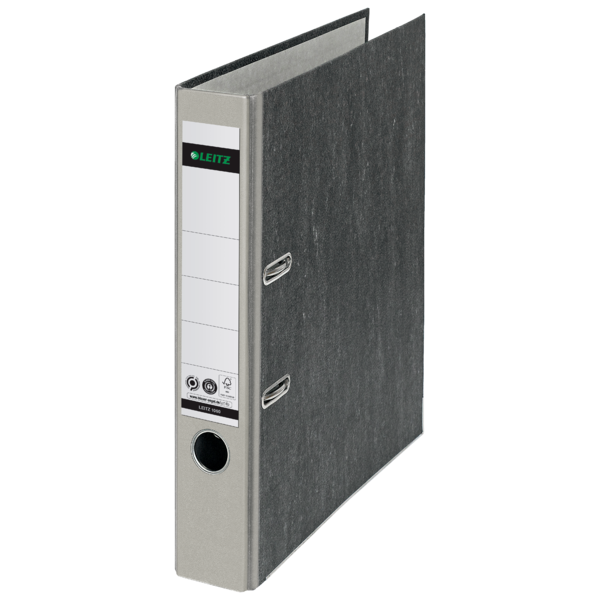 El archivador de palanca Leitz es un producto de alta calidad, respetuoso con el medio ambiente, fabricado con cartón 100% reciclado y con compensación de emisiones de CO2. Su diseño clásico jaspeado y su mecanismo superior de 180° lo hacen perfecto para un uso diario y duradero. Cuenta con certificaciones Blue Angel y FSC, garantizando su compromiso con la sostenibilidad ambiental desde 1896.