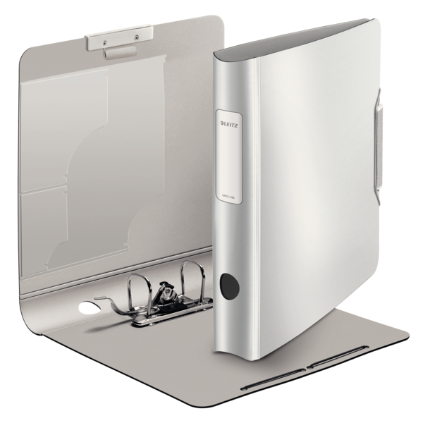El archivador de palanca de 180° Active Style de Leitz Blanco ártico está fabricado con un material ligero y duradero, con un elegante acabado cepillado. Está disponible en varios colores sofisticados, incluyendo blanco ártico, rojo granate, verdeceladón, azul titanio y negro satinado, todos ellos en combinación con un marco plateado que le da un toque de elegancia adicional.