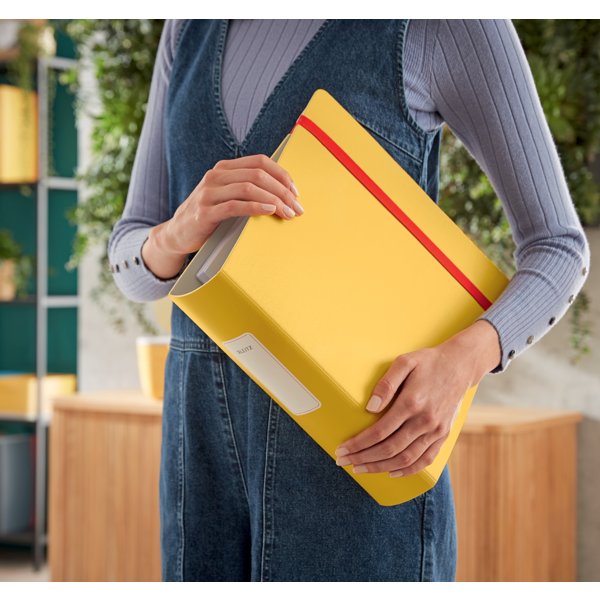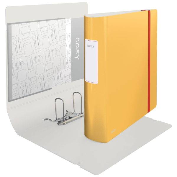 Este Archivador Leitz Active 180° Cosy está fabricado con materiales de alta calidad que lo hacen ligero y resistente. Su diseño ergonómico lo hace fácil de transportar y utilizar en movimiento. Está diseñado para archivos de tamaño A4 y tiene un lomo de 82 mm en un atractivo color amarillo cálido.