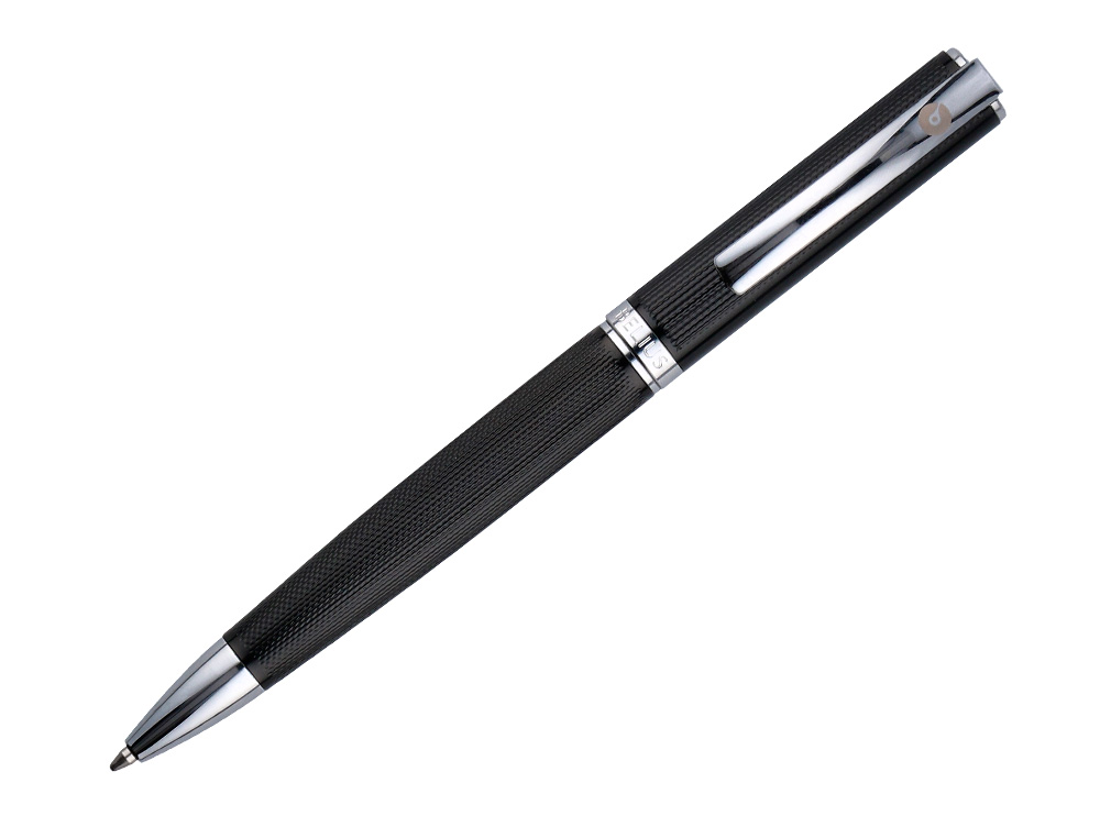 El Bolígrafo y Estuche Belius Turbo está fabricado con aluminio de alta resistencia, lo que lo hace ligero pero duradero, perfecto para un uso diario. La textura punteada en negro y plateado le da un aspecto moderno y elegante, ideal para profesionales exigentes que valoran la calidad y el estilo en sus accesorios de escritura.