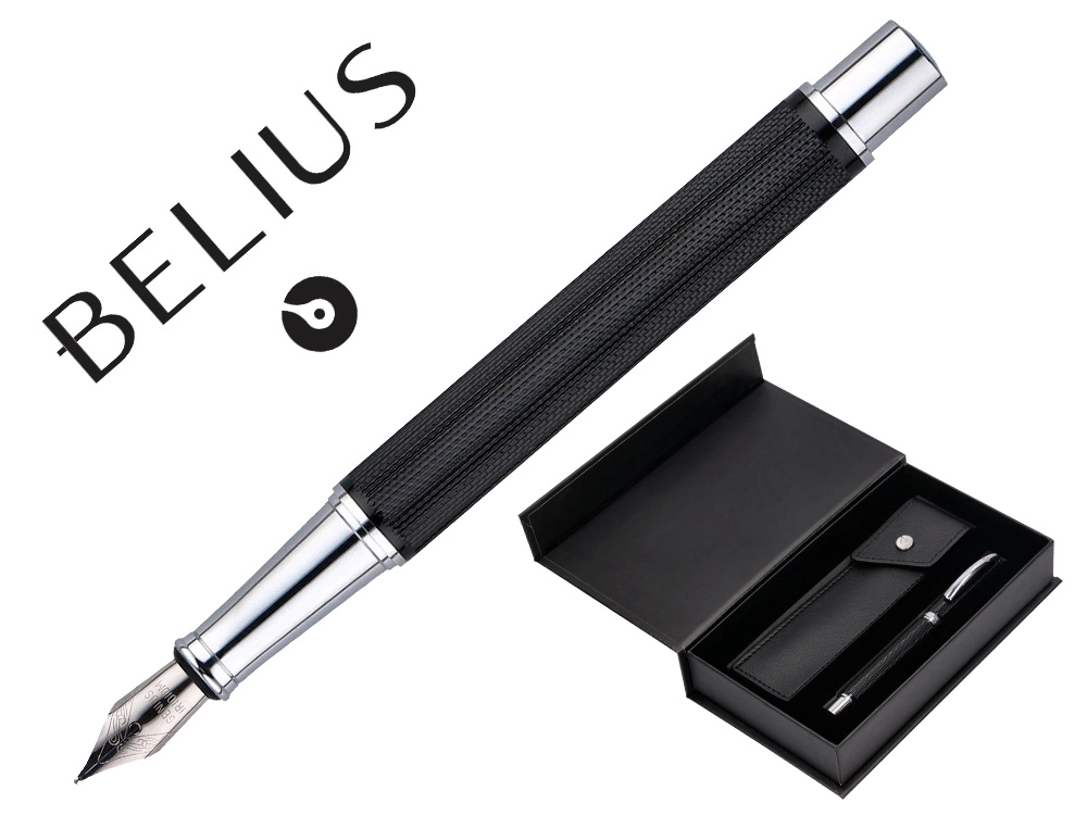 Este set de pluma y estuche Belius Turbo está diseñado para ofrecer un alto rendimiento y elegancia. La pluma está hecha de aluminio con una textura punteada que le brinda un aspecto moderno. El color negro y plateado le otorga un toque de sofisticación, mientras que la tinta azul asegura una escritura suave y duradera.