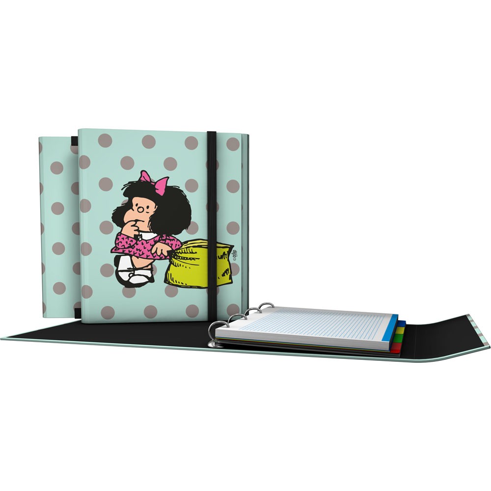 La carpeta de anillas con recambio de papel plastificado soft A4 4X25mm Fsc Mafalda Grafoplás es un artículo de papelería diseñado para organizar y guardar documentos de forma segura y elegante. Su diseño incluye anillas que permiten sujetar y clasificar las hojas, con recambios para renovar su uso y papel plastificado soft que le proporciona durabilidad y resistencia. Este producto cumple con los estándares de sostenibilidad del Fsc, por lo que también es una elección consciente para el cuidado del medio ambiente.