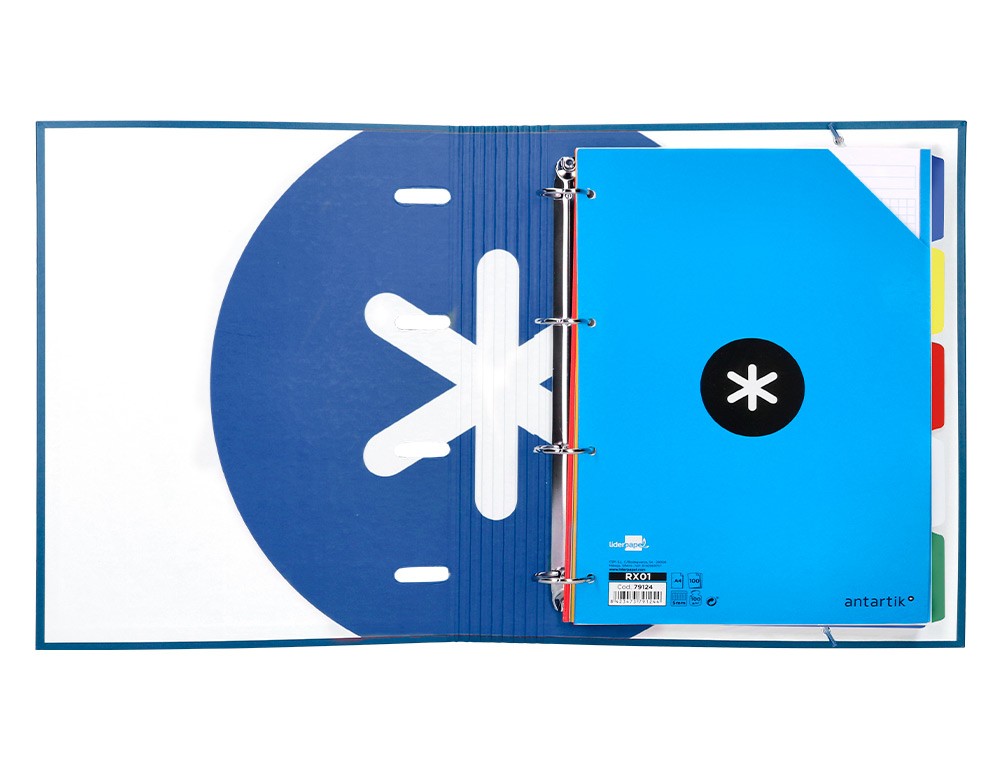 La Carpeta Con Recambio Liderpapel ANTARTIK A4 Cuadro 5 Mm Forrada 4 Anillas 40Mm Redondas Color Azul Marino es un práctico accesorio de oficina diseñado para organizar y proteger tus documentos de forma segura. Con un tamaño A4 y un cuadro de 5 mm, esta carpeta forrada con 4 anillas redondas de 40mm en color azul marino es ideal para mantener tus hojas en orden y protegidas.