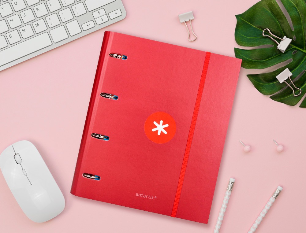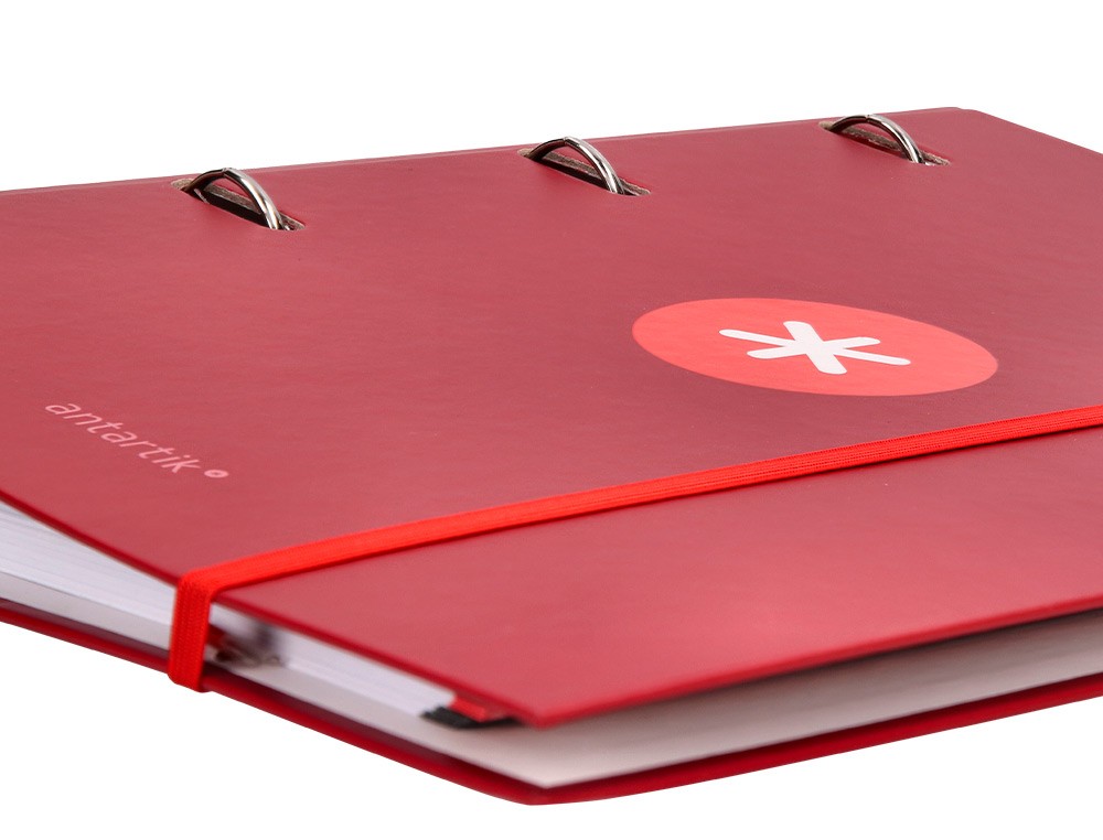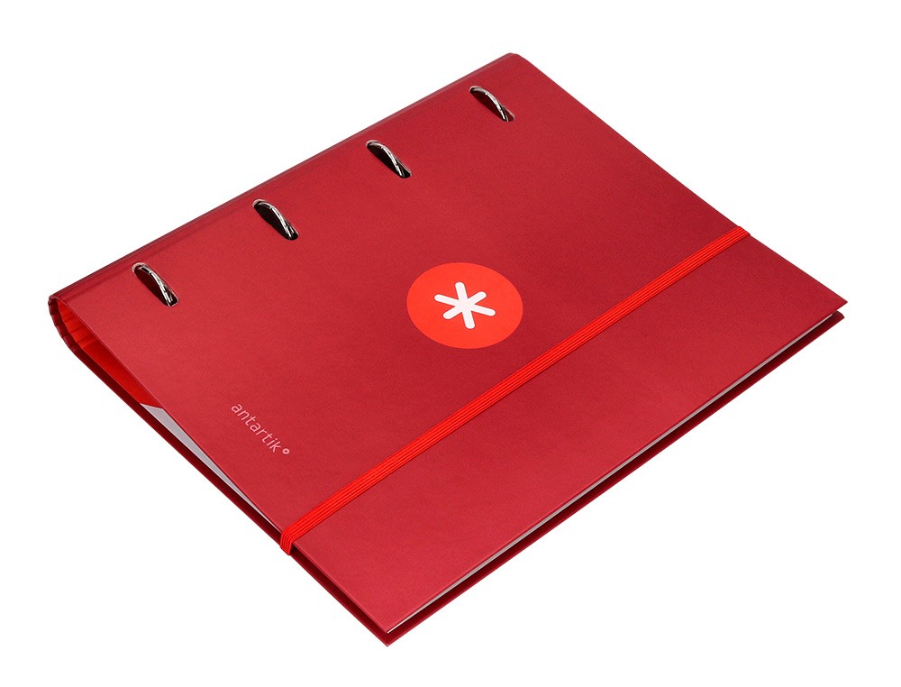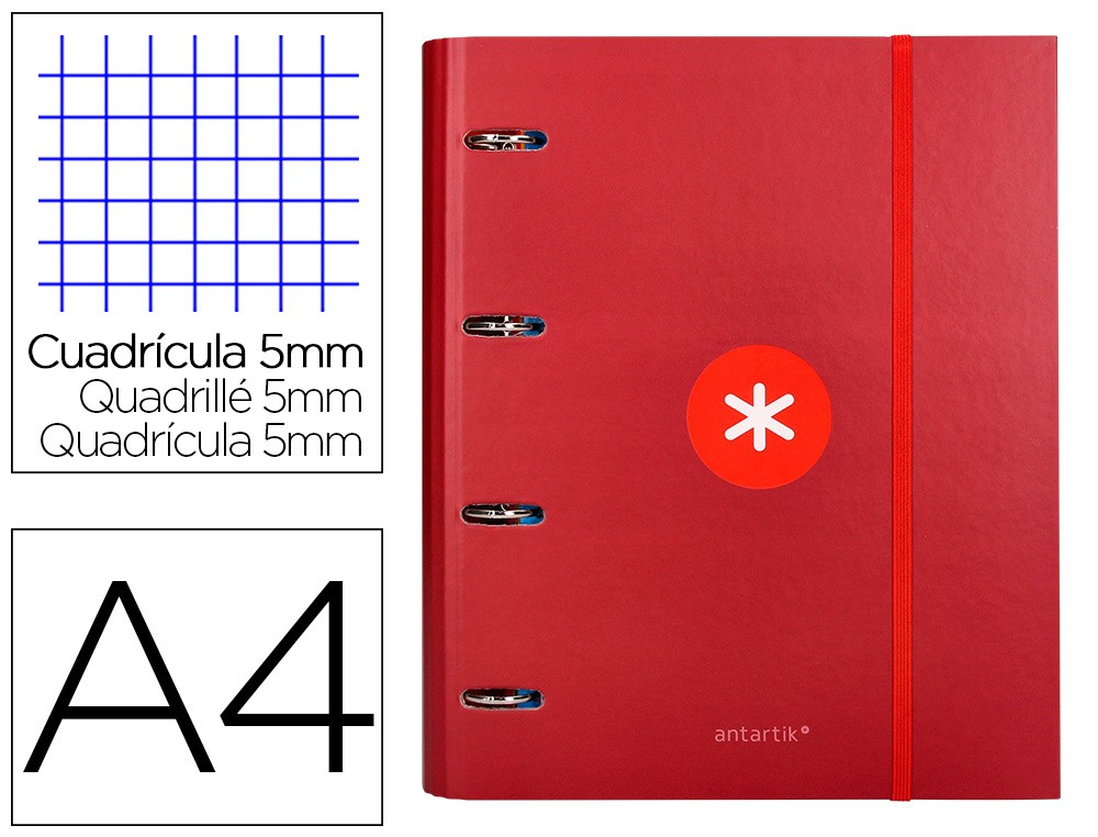 Esta carpeta con recambio de la marca Liderpapel modelo ANTARTIK A4 está diseñada para organizar y proteger documentos en tamaño A4. Con cuadro de 5mm y forrada con 4 anillas de 40mm redondas en color frambuesa, es ideal para almacenar y transportar hojas de papel de forma segura y ordenada.