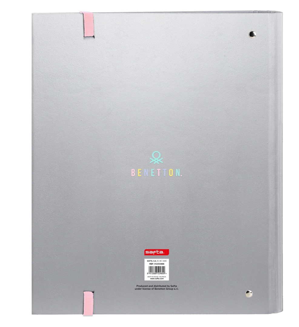 Esta carpeta está fabricada con materiales de alta calidad que garantizan su resistencia y durabilidad. El exterior presenta un acabado "Silver" de Benetton que le aporta un aspecto sofisticado y profesional. Las anillas de 35 mm de grosor ofrecen una sujeción segura para mantener tus documentos en orden. Además, su tamaño compacto la hace ideal para transportarla cómodamente en mochilas o maletines.