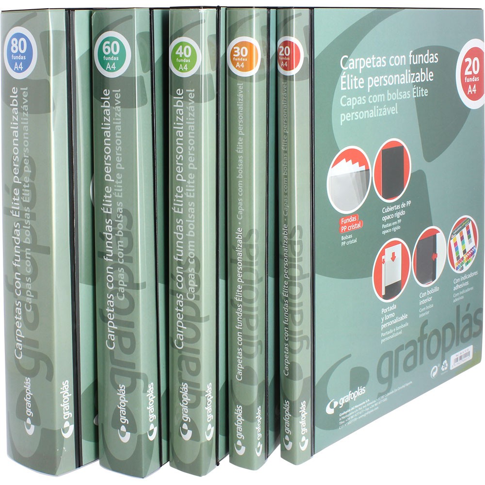 La Carpeta Con Fundas Elite Personalizable es un producto de alta calidad fabricado por Grafoplás. Está diseñado para almacenar documentos de tamaño folio de forma segura y organizada.