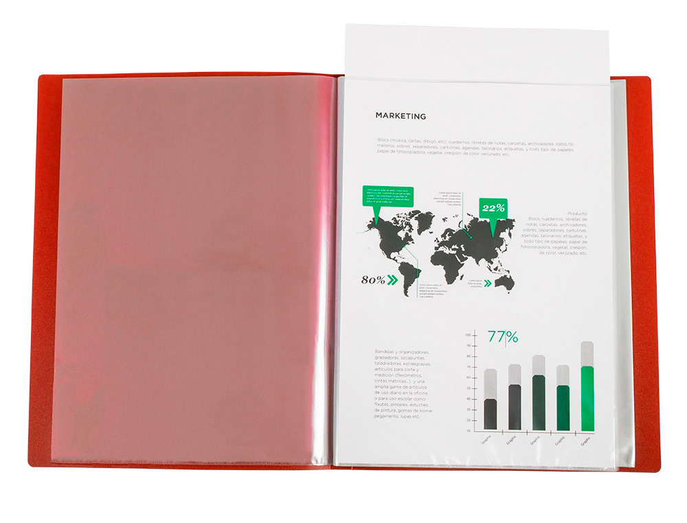 Para utilizar la carpeta, simplemente inserta las hojas o documentos en las fundas canguro en la cantidad deseada, asegurándote de que estén en formato DIN A4. El diseño personalizable de la portada y lomo te permite agregar etiquetas o diseños para identificar el contenido de la carpeta de manera rápida y sencilla.