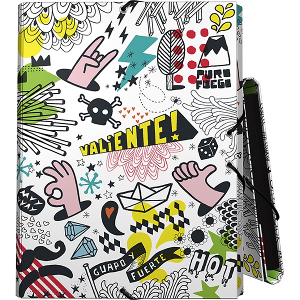 Para usar esta carpeta, simplemente coloca los documentos dentro de las solapas y asegura las gomas para mantenerlos en su lugar. El papel plastificado permite una mayor durabilidad y protección contra el desgaste.