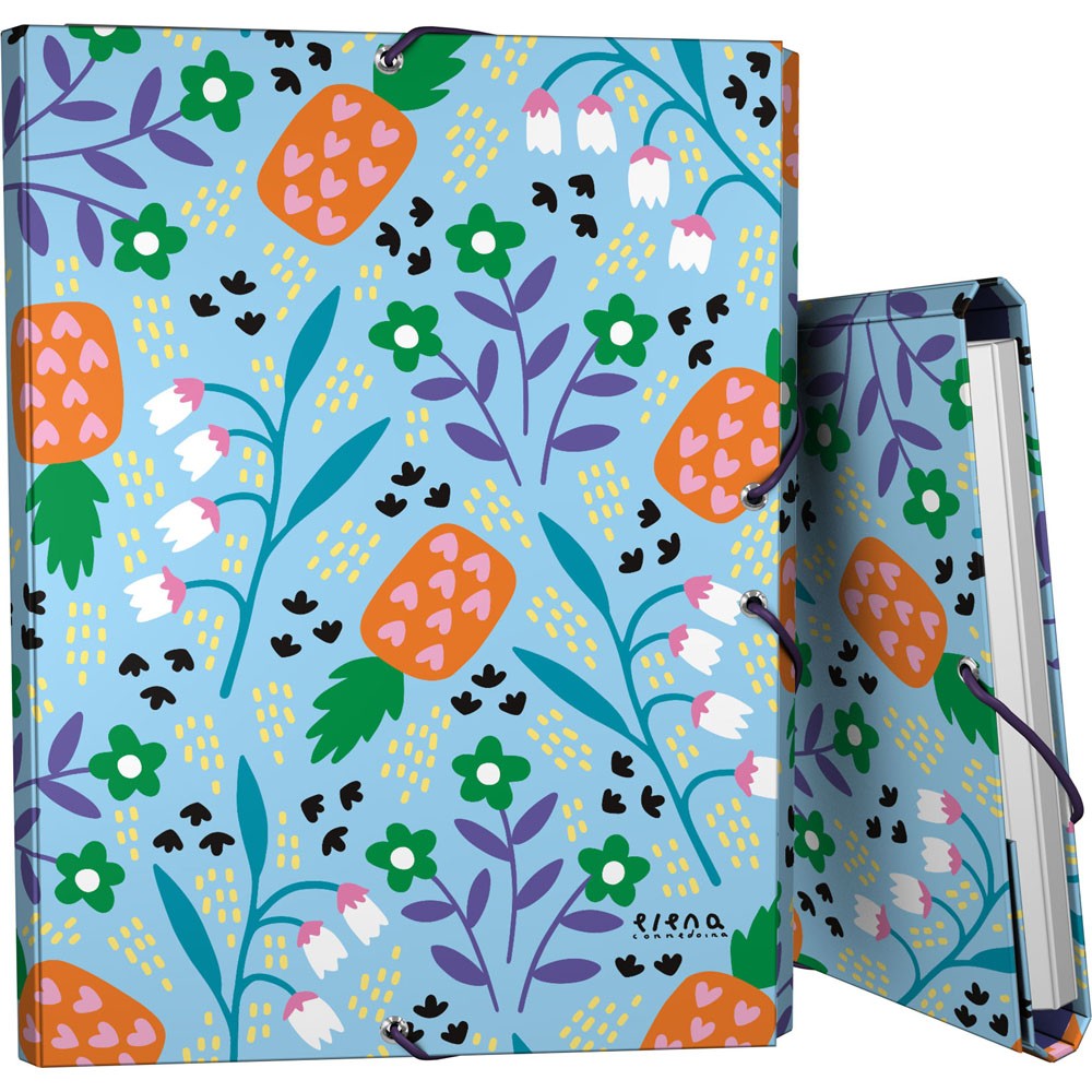 Esta carpeta está fabricada con materiales ecológicos certificados FSC, lo que garantiza su origen sostenible. Sus gomas elásticas mantienen los documentos seguros, mientras que las solapas ofrecen un almacenamiento adicional. Además, su diseño Flower Grafoplás le da un toque de estilo y originalidad.