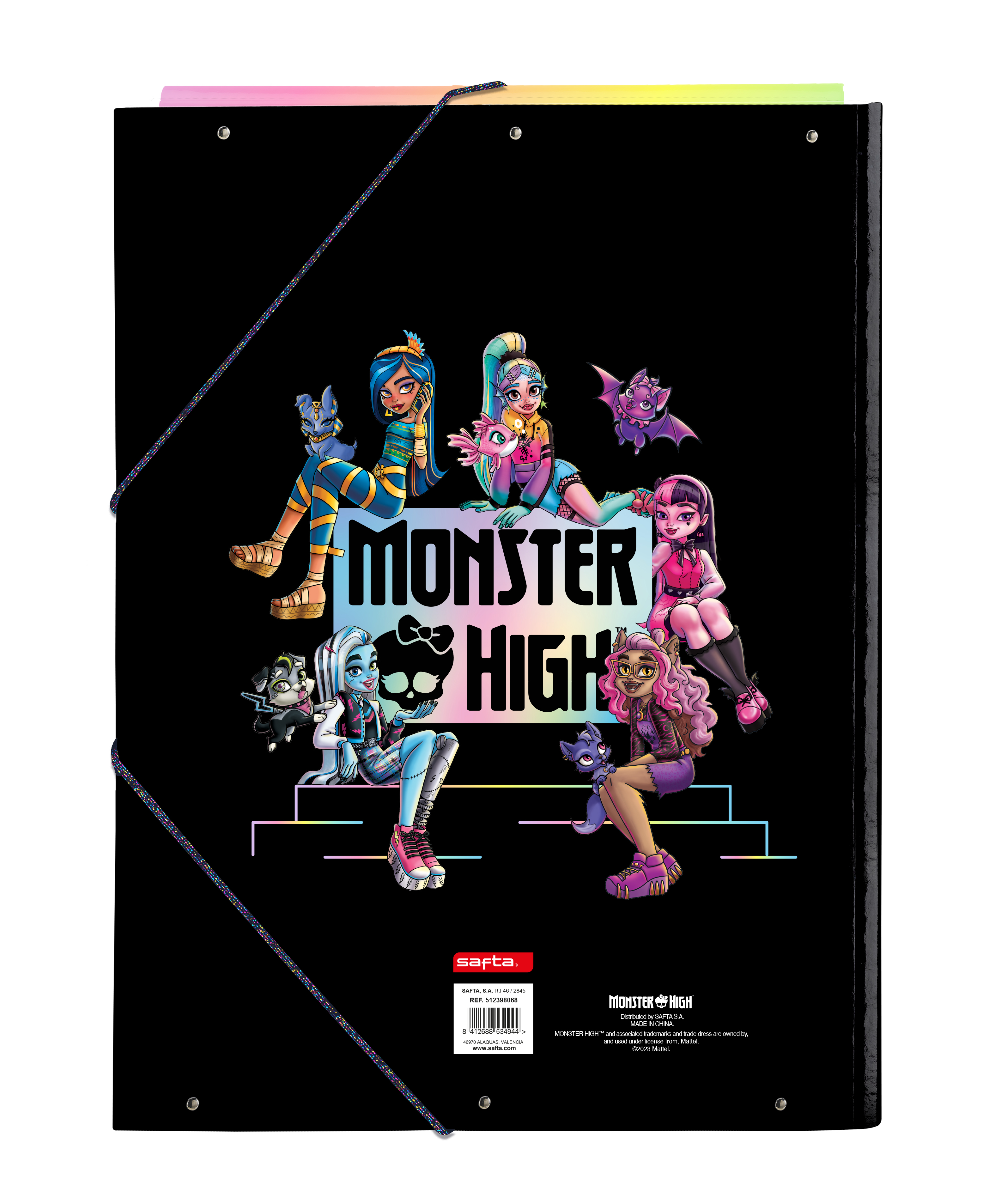 Esta carpeta está compuesta por material resistente y duradero, que garantiza su uso prolongado. Las solapas y el cierre seguro proporcionan protección adicional a los documentos guardados en su interior. Además, el diseño basado en Monster High agrega un toque de diversión y estilo a su organización diaria.