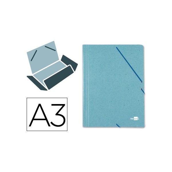 La Carpeta Exacompta Gomas Carton Simil-Prespan Tres Solapas Din A3 Azul es un elemento de papelería diseñado para almacenar y organizar documentos de tamaño A3 de forma segura y ordenada. Sus tres solapas proporcionan un cierre seguro para proteger el contenido de la carpeta.