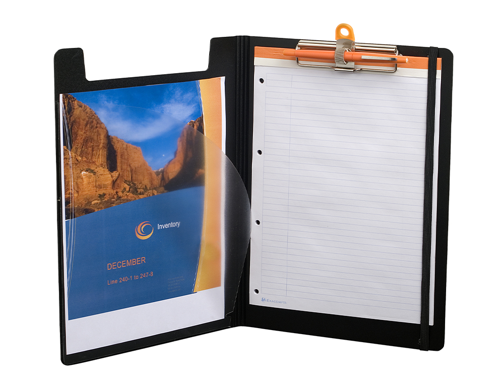 La Carpeta Exacompta Exactive está fabricada con materiales de alta calidad, como el polipropileno negro resistente y duradero. La pinza y el portabolígrafo están integrados en la carpeta para ofrecer un acceso conveniente a tus útiles de escritura. Su tamaño Din A4 la hace perfecta para almacenar documentos de ese formato, manteniéndolos ordenados y protegidos.