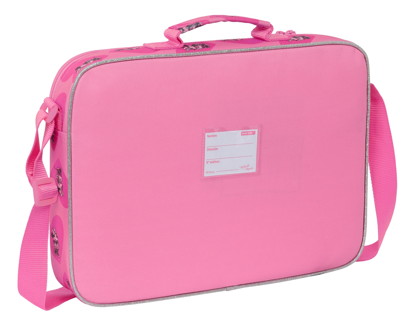 La Cartera Extraescolares Minnie Mouse "Loving" es un accesorio práctico y adorable para llevar los materiales escolares o personales de forma organizada y con estilo. Con un tamaño de 38 x 28 x 6 cm, esta cartera ofrece espacio suficiente para guardar libros, cuadernos, lápices, y otros objetos esenciales.