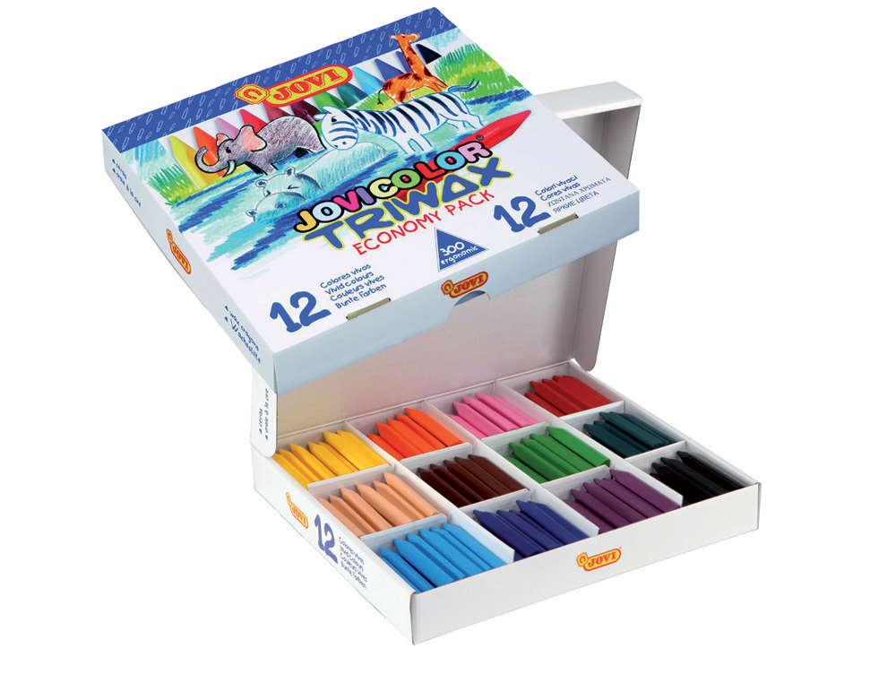 La caja de lapices de cera Jovicolor Triwax contiene 300 unidades con 12 colores surtidos. Cada lápiz está elaborado con cera de alta calidad y pigmentos seguros para su uso. Los colores incluidos son intensos y duraderos, proporcionando un acabado vibrante a tus creaciones artísticas.