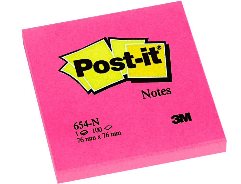 Este artículo es un bloc de notas adhesivas de la reconocida marca Post-It. Tiene un tamaño de 76x76 mm y viene en un vibrante color fucsia neon. Cuenta con 100 hojas de papel adhesivo que permite pegarlas y despegarlas fácilmente en cualquier superficie.