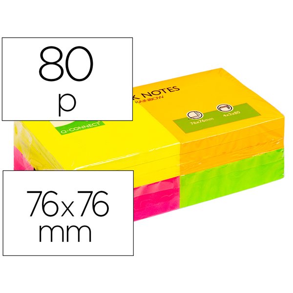 El Bloc De Notas Adhesivas Quita Y Pon Q-Connect está compuesto por papel de alta calidad y adhesivo no tóxico, lo que garantiza que las notas se adhieran de manera efectiva y segura a cualquier superficie. Los colores neon no se desvanecen con el tiempo, lo que hace que las notas sean fáciles de visualizar y atractivas.