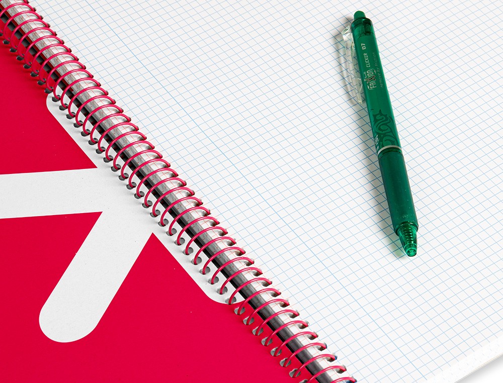 El cuaderno está compuesto por papel de 90 gramos de alta durabilidad, con una tapa dura resistente que protege las hojas en su interior. Además, el cuaderno cuenta con un sistema de encuadernación en espiral que le otorga durabilidad y versatilidad en su uso diario.