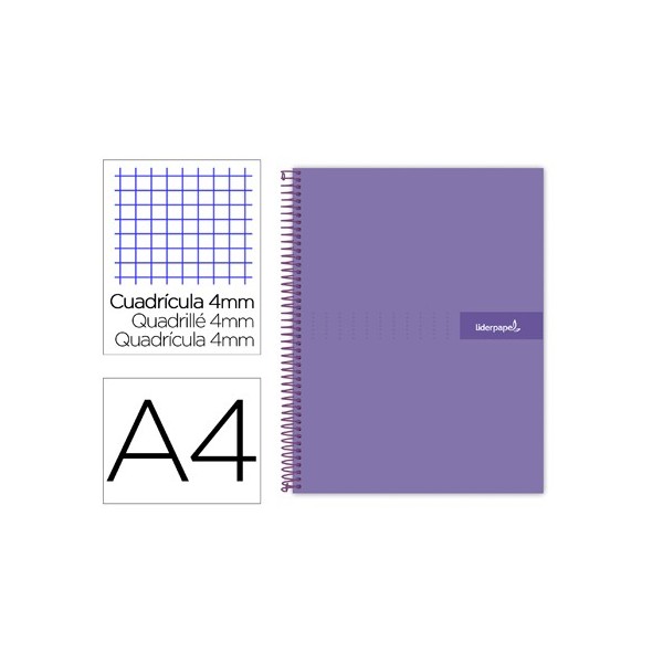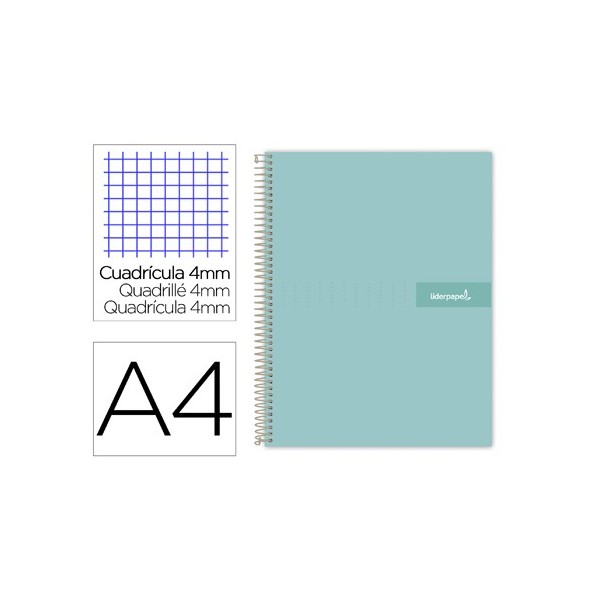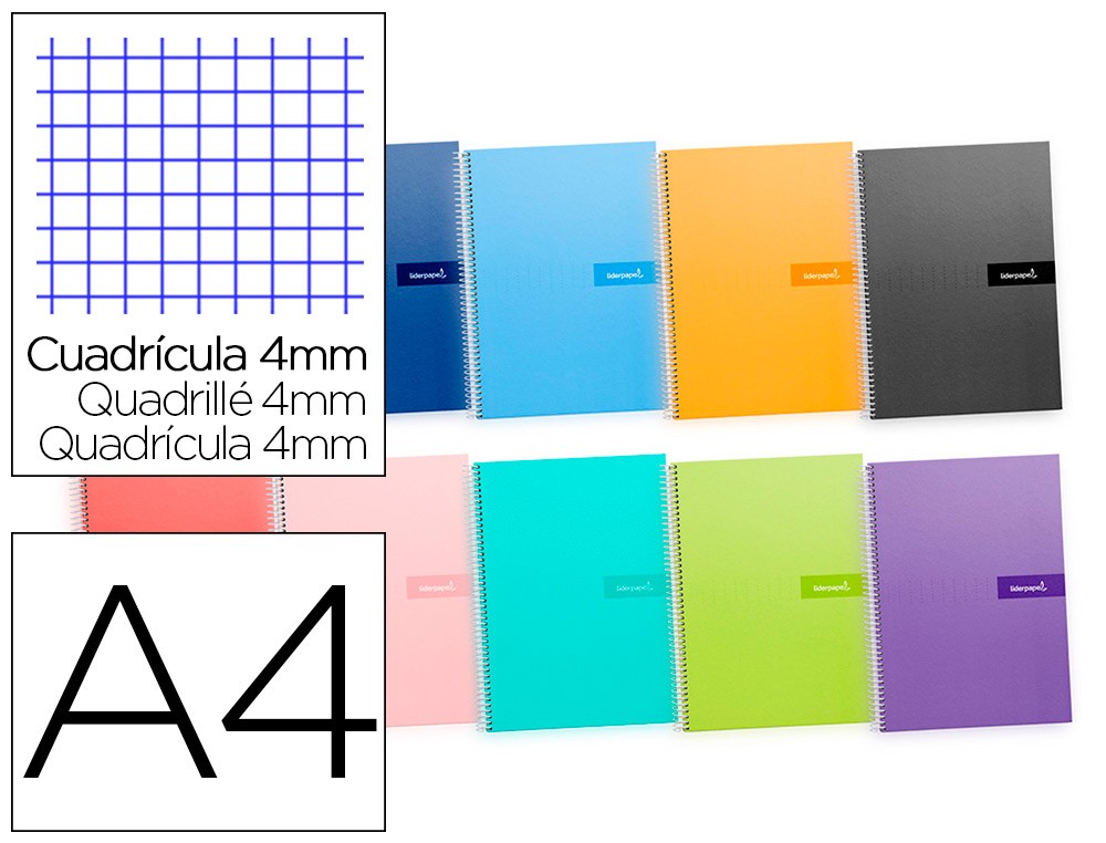 Cuaderno espiral liderpapel a4 crafty tapa forrada 80h 90 gr cuadro 4 mm con margen colores surtidos