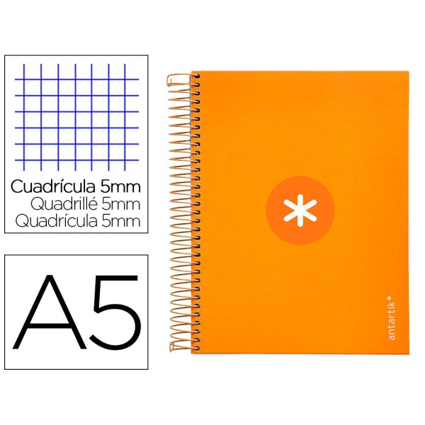 El cuaderno Espiral Liderpapel A5 Micro ANTARTIK es un cuaderno de tamaño A5 con tapa forrada y 120 hojas. Está diseñado con un gramaje de 100 gramos, cuadros de 5mm y 5 bandas para organizar el contenido. Además, cuenta con 6 taladros para facilitar su archivo y su color es azul.