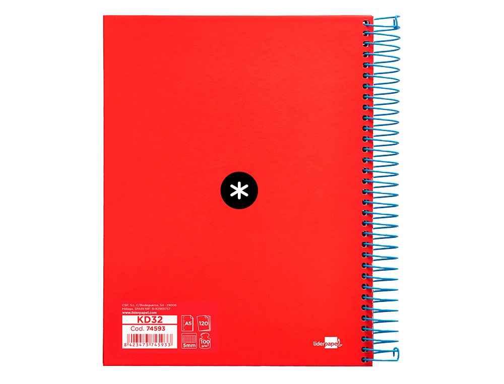 El Cuaderno Espiral Liderpapel A5 Micro ANTARTIK Tapa Forrada está compuesto por papel de 100 gramos, lo que lo hace resistente a roturas y a la absorción excesiva de tinta. Tiene 5 bandas de color rojo para identificar y organizar el contenido, y 6 taladros para poder archivarlo fácilmente en carpetas o archivadores.