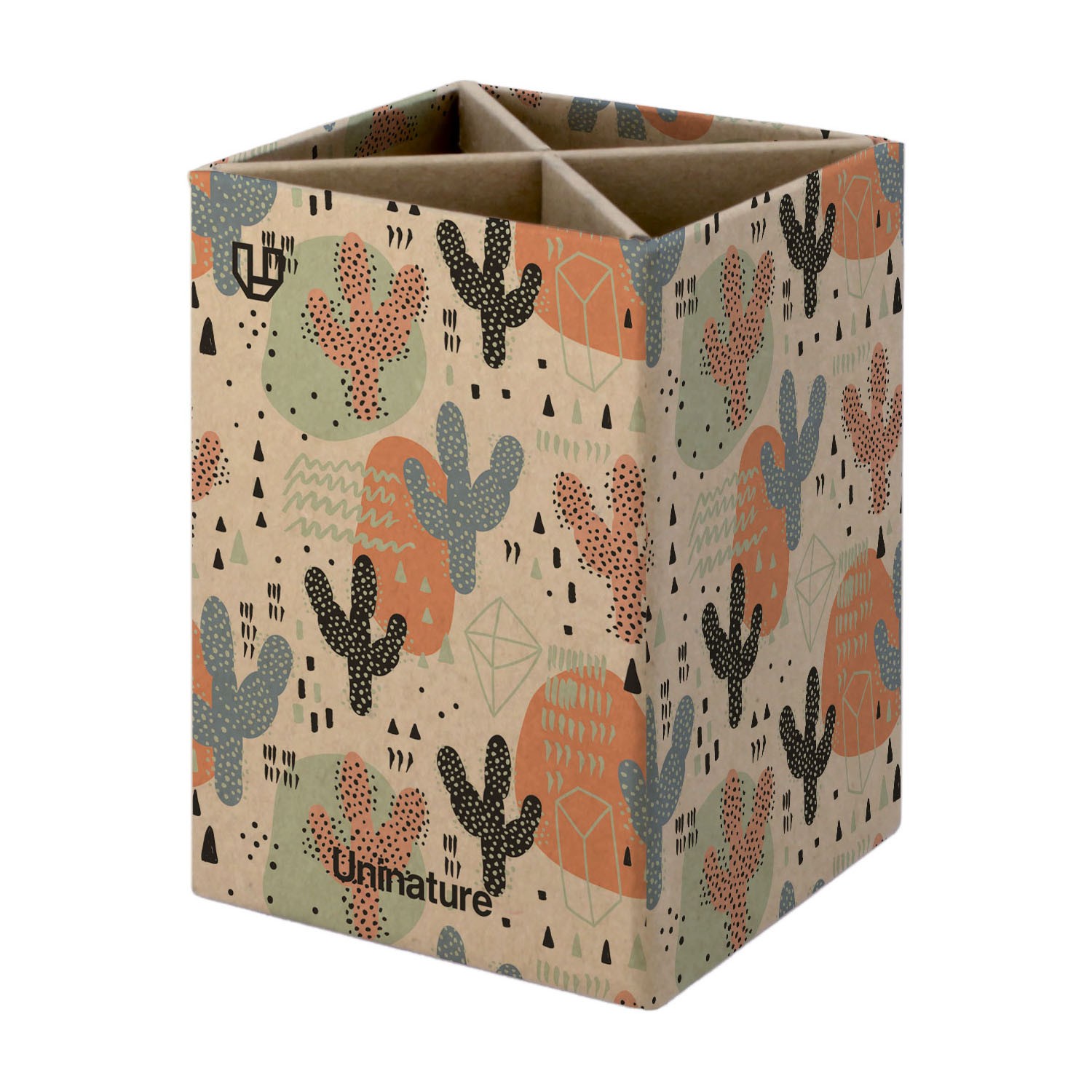 El Cubilete Kraft Sobremesa Forrado Uninature Cactus está fabricado con materiales resistentes y de alta calidad, lo que garantiza su durabilidad y resistencia al uso diario. Su acabado forrado y estampado de cactus le brinda un aspecto original y atractivo.