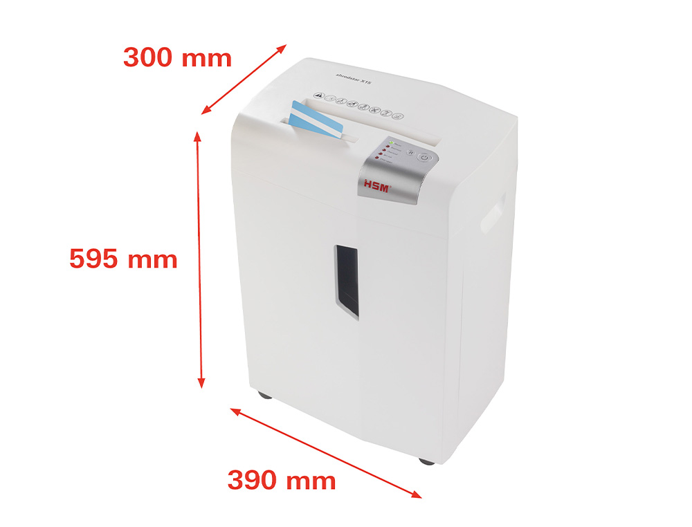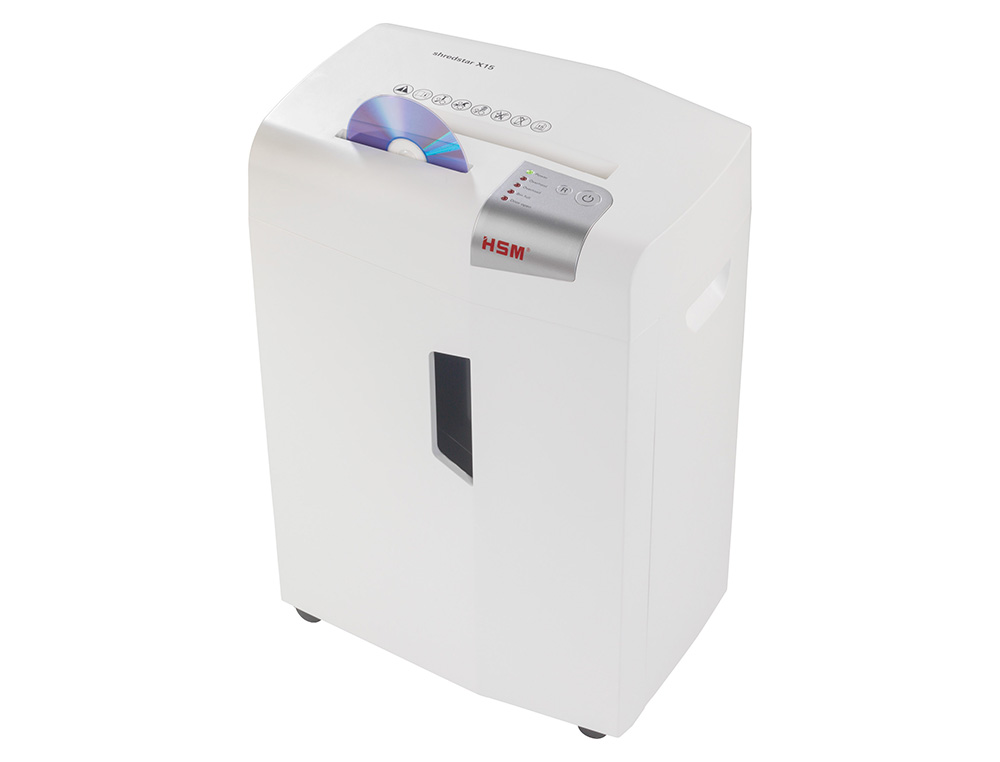 Para usar la Destructora de Documentos HSM Shredstar X15, simplemente coloque el papel, CD/DVD, grapas, tarjetas de crédito u otros materiales en la abertura de entrada con un ancho máximo de 230 mm. El dispositivo tiene un volumen de recogida de 26 litros, lo que significa que requiere un vaciado menos frecuente. Con una capacidad de corte de hasta 15 hojas (80g/m²), es muy eficiente en la destrucción de documentos y otros materiales.