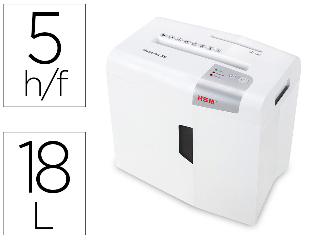 La Destructora de Documentos HSM Shredstar X5 es una máquina diseñada para destruir documentos de forma segura y eficiente. Con una capacidad de corte de 5 hojas en partículas, esta destructora es capaz de destruir grapas, clips, CDs y tarjetas de forma rápida y sencilla. Cumple con los estándares de seguridad DIN 66399, garantizando la protección de la información confidencial.
