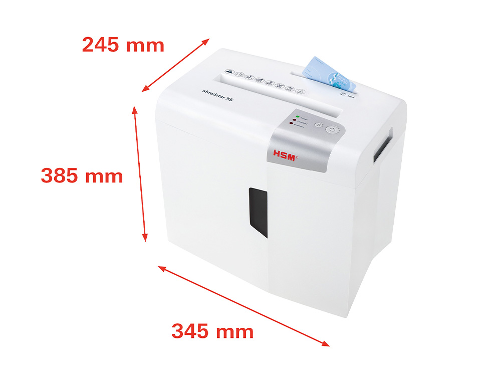 La Destructora de Documentos HSM Shredstar X5 está compuesta por materiales de alta calidad que garantizan su durabilidad y rendimiento. Con capacidad de corte de 10 hojas de papel (en peso de 80g/m²), así como la destrucción de CDs, grapas, clips y tarjetas de crédito, esta máquina es versátil y eficaz en la protección de datos confidenciales. Además, su nivel de seguridad DIN 66399: E2, F1, O1, P4, T2, la convierte en una opción confiable para la destrucción segura de documentos.