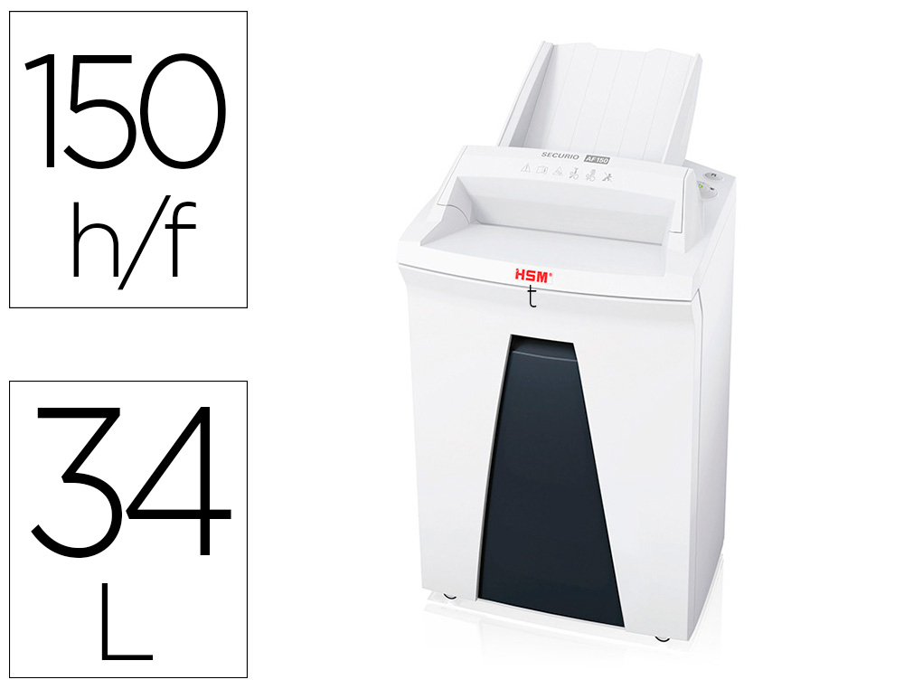 La Destructora De Documentos Hsm Securio Securio Af150 está compuesta por materiales de alta calidad que le brindan durabilidad y resistencia. Con una anchura de entrada de 240mm y un volumen de receptáculo de 34 litros, ofrece un rendimiento óptimo para el manejo de una gran cantidad de documentos y materiales a destruir.