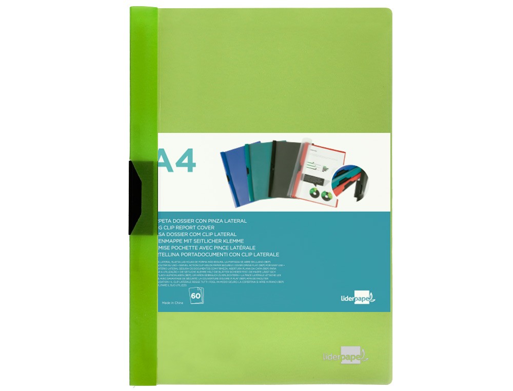 Entrega en 24h Carpeta liderpapel dossier pinza lateral polipropileno din a4 verde translucido 60 hojas pinza deslizante