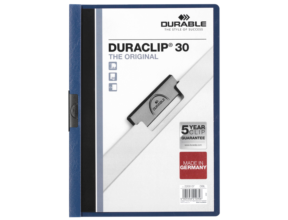 En resumen, la Carpeta Duraclip Dossier Pinza Lateral Azul Oscuro Capacidad 30 Hojas es un elemento indispensable para el almacenamiento y organización de documentos en cualquier entorno de trabajo.