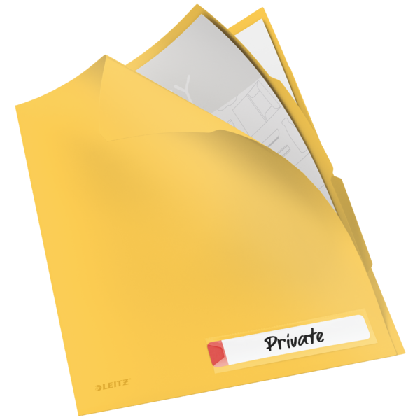 El dosier de privacidad con pestañas Leitz Cosy Amarillo cálido es un producto diseñado para almacenar y transportar documentos personales y comerciales confidenciales. Con su material opaco y diseño minimalista, garantiza la protección y privacidad del contenido, manteniéndolo fuera de la vista y asegurando la confidencialidad de la información.