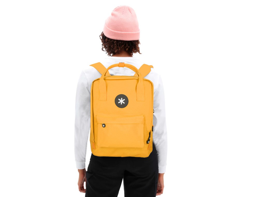 Cartera antartik mochila 2 asas y bolsillos exteriores mostaza 300x115x390 mm