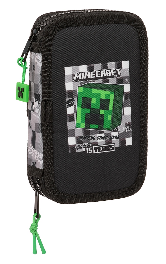 Plumier Doble Pequeño 28 Piezas Minecraft 12,5 x 19,5 x 4 cm.