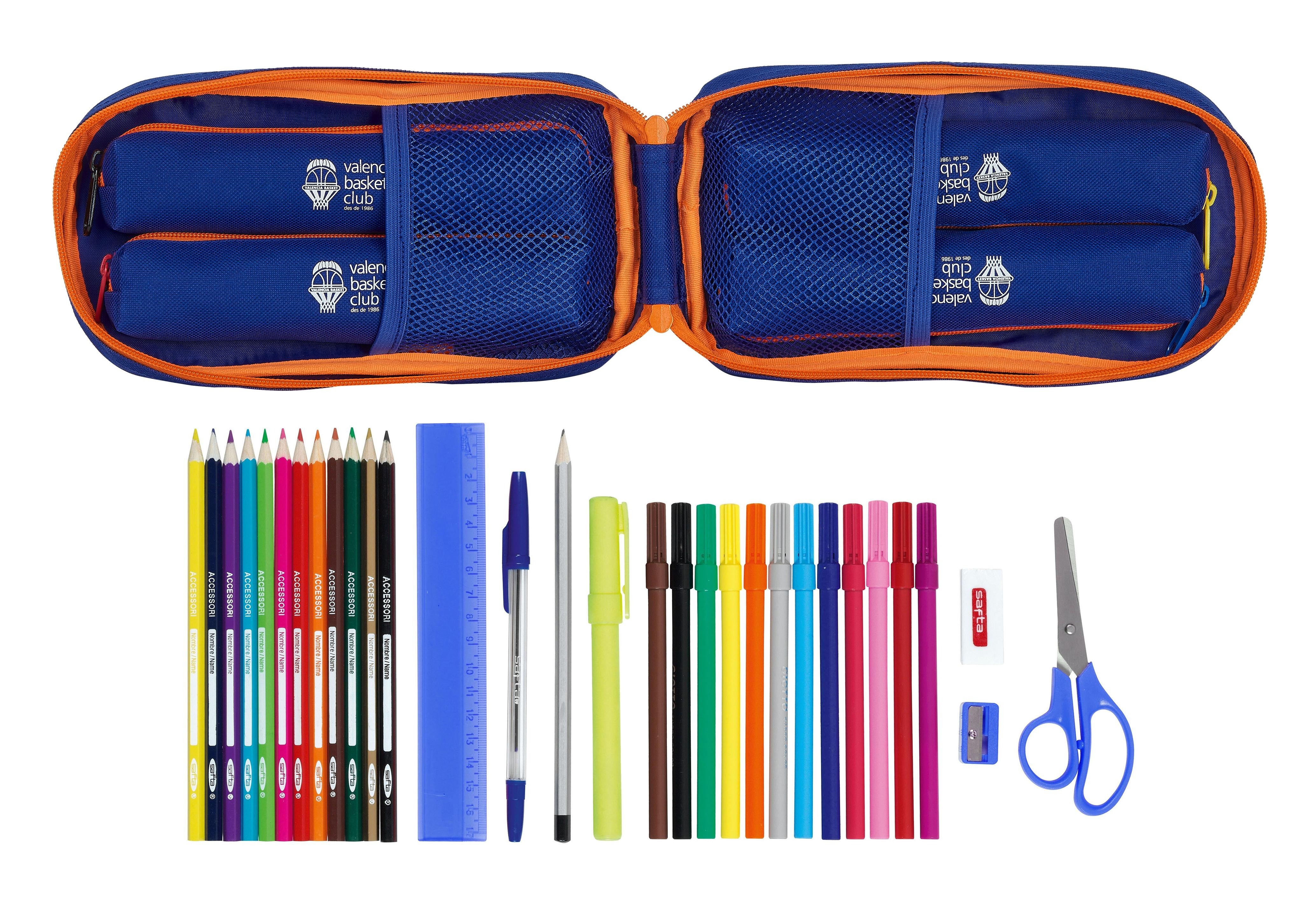 Estuche Escolar VALENCIA BASKET 33 Piezas 12 x 23 x 5 cm.