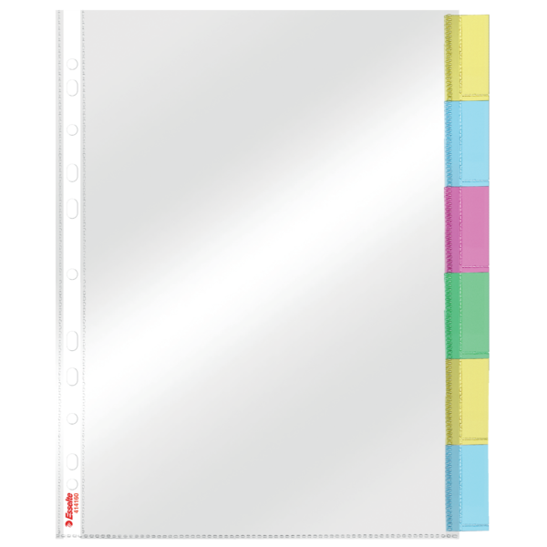Estas fundas están fabricadas en polipropileno (PP) de alta calidad con un grosor de 85 micras, lo que garantiza su resistencia y durabilidad. Cada funda cuenta con un multitaladro-11 para ser fácilmente archivada en carpetas de anillas. El envase contiene un set de 6 fundas, cada una con pestaña de color diferente, lo que ofrece una solución completa para la organización de documentos.