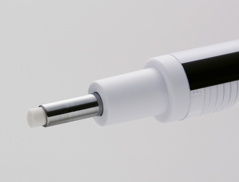 El portagomas está fabricado con materiales de alta calidad que garantizan su durabilidad y eficacia. La punta redonda tiene un diámetro de 2,3 mm, lo que permite una precisión excepcional al borrar. Su diseño monocromo le da un aspecto elegante y profesional, ideal para estudiantes, artistas y profesionales.