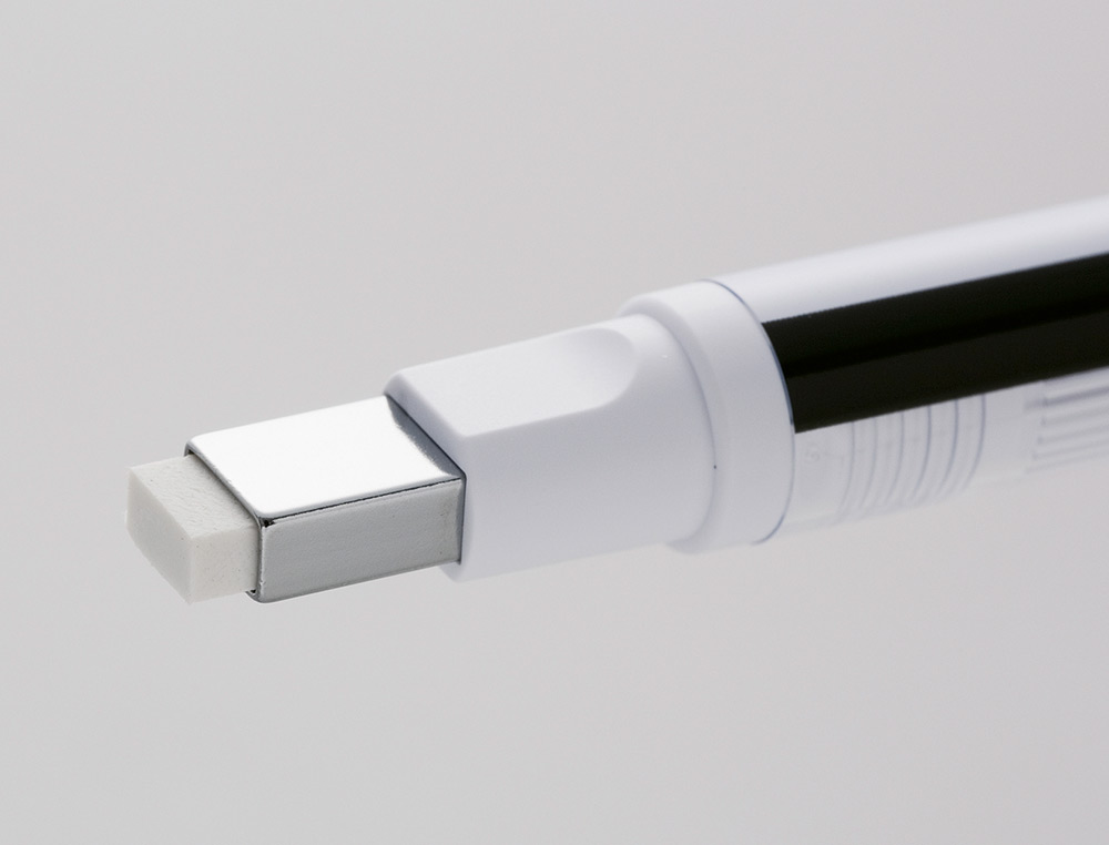 Para utilizar el Portagomas Mono Zero, simplemente sujeta el clip y gira la carcasa para que la punta rectangular salga o se retraiga según sea necesario. Puedes usarlo para corregir detalles minuciosos o crear luces y reflejos en tus dibujos con total precisión. Además, al no dejar residuos, te garantiza un acabado impecable en tus proyectos artísticos.