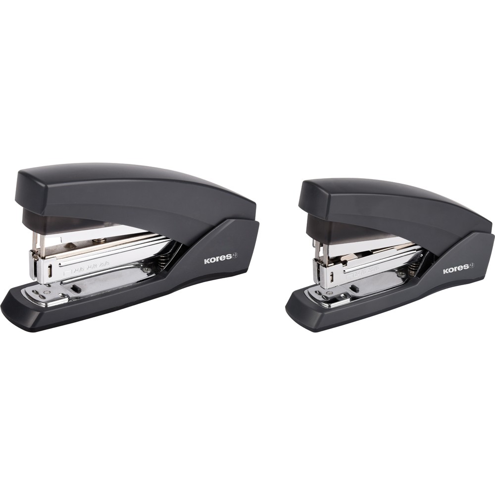 La grapadora de plástico fácil de 25 hojas/80g con 80 grapas 24/6 en color gris de la marca Kores es una herramienta de oficina esencial para unir documentos de forma rápida y eficiente. Con capacidad para grapar hasta 25 hojas a la vez, esta grapadora es ideal para usar en el hogar, la escuela o la oficina.