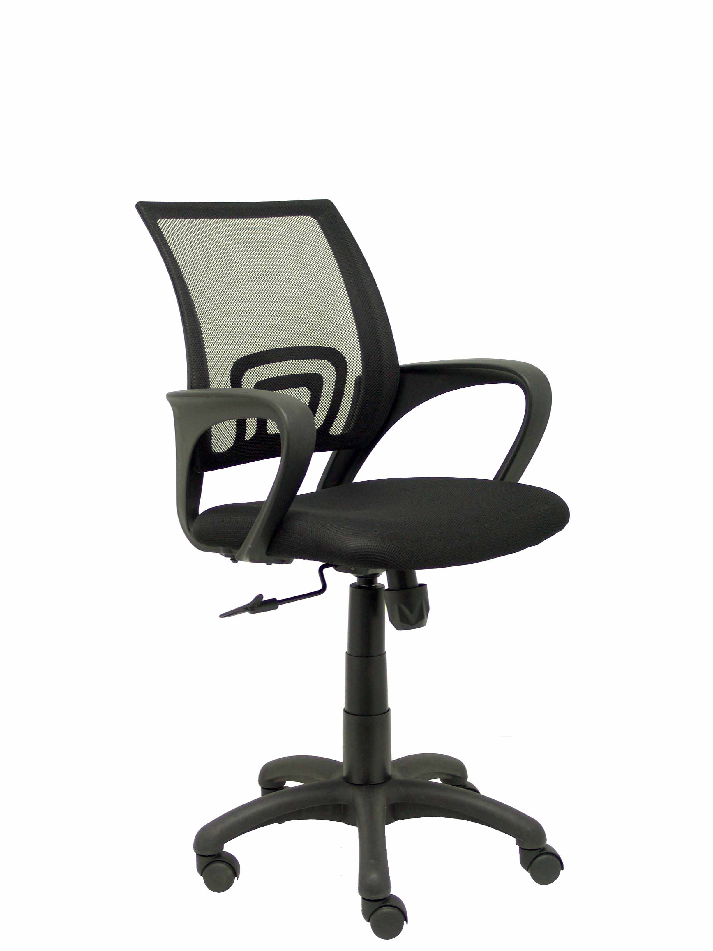 Respaldo de malla color negro y asiento tapizado en tejido 3D color negro