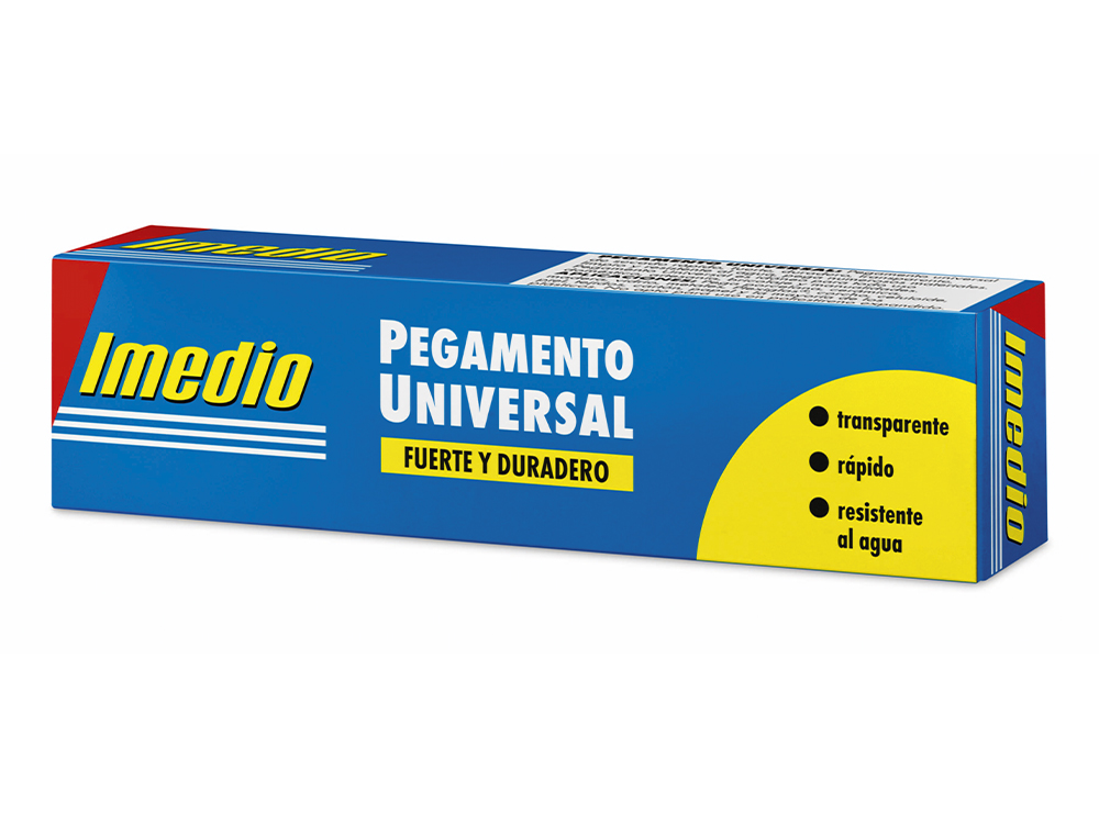 El Pegamento Imedio Universal Transparente Banda Azul 35 Ml Unidad es un adhesivo de alta calidad que se utiliza para unir una amplia variedad de materiales, como papel, cartón, plástico, madera, metal y más. Su fórmula transparente garantiza que las uniones sean discretas y estéticamente agradables, perfectas para proyectos de manualidades, reparaciones domésticas y trabajos de bricolaje.