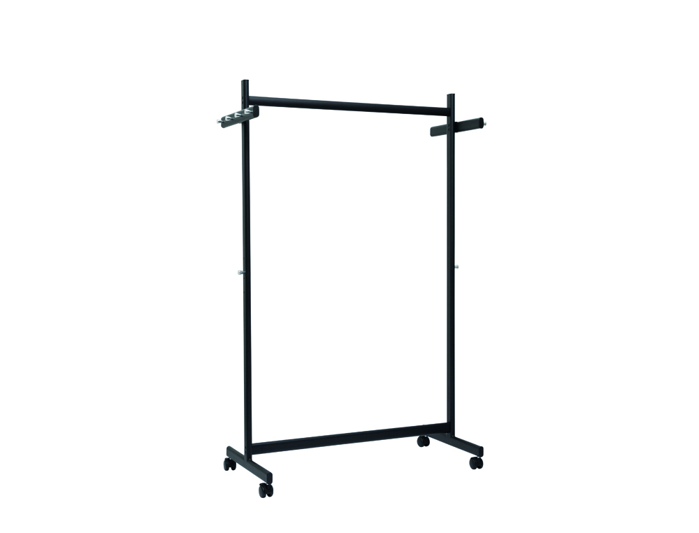Este perchero está fabricado con materiales resistentes y duraderos que garantizan su estabilidad y soporte para colgar prendas. El acabado en color negro le da un aspecto elegante y moderno que se adapta a cualquier entorno. Además, las dimensiones del perchero permiten una gran capacidad de almacenamiento sin comprometer la movilidad y la estabilidad.