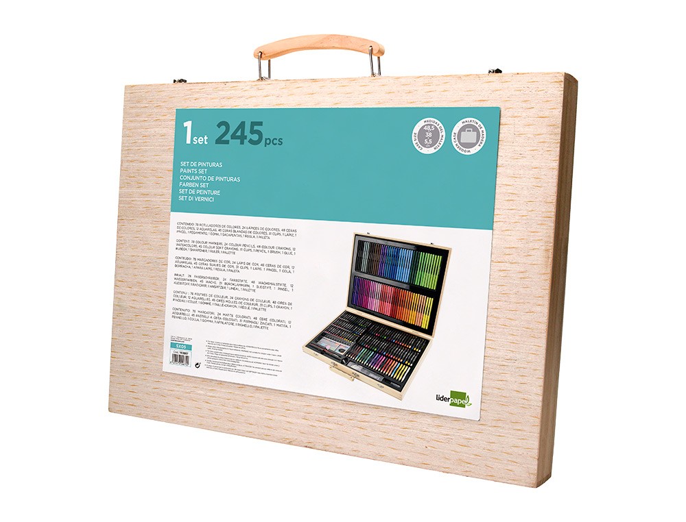Entrega en 24h Estuche de pintura liderpapel madera 245 piezas maletin 49x36,6x4,5 cm