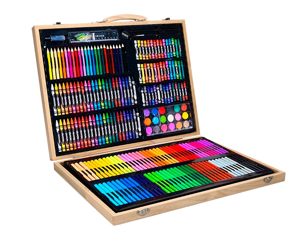 Estuche de pintura liderpapel madera 245 piezas maletin 49x36,6x4,5 cm