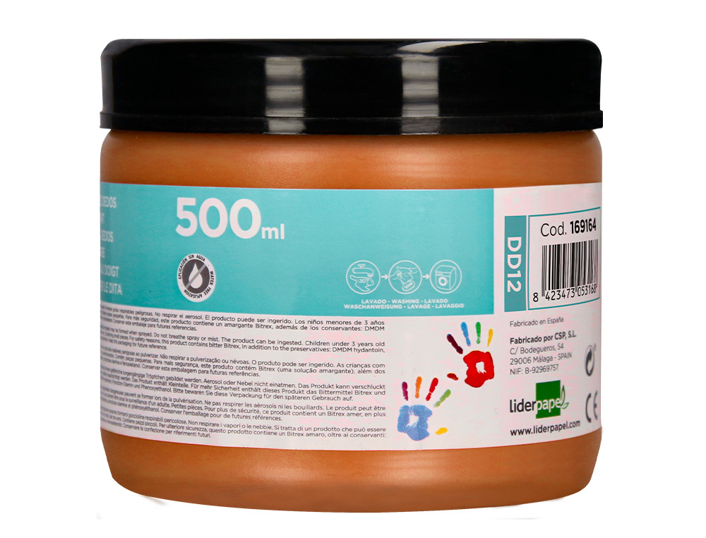 La pintura de dedos Liderpapel Marrón, presentada en una tarrina de 500 cc, es un producto de alta calidad diseñado para la creatividad y diversión de niños y adultos por igual. Con una consistencia suave y cremosa, esta pintura se adhiere fácilmente a diferentes superficies, permitiendo la creación de obras de arte únicas y duraderas.