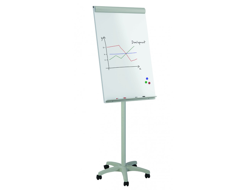 Esta pizarra blanca está fabricada con materiales de alta calidad, incluyendo una superficie metálica lacada que garantiza durabilidad y resistencia a las manchas. También cuenta con un marco resistente y ruedas que facilitan su movilidad. Sus dimensiones de 68x104 cm ofrecen un amplio espacio para escribir o presentar contenido visual durante conferencias.